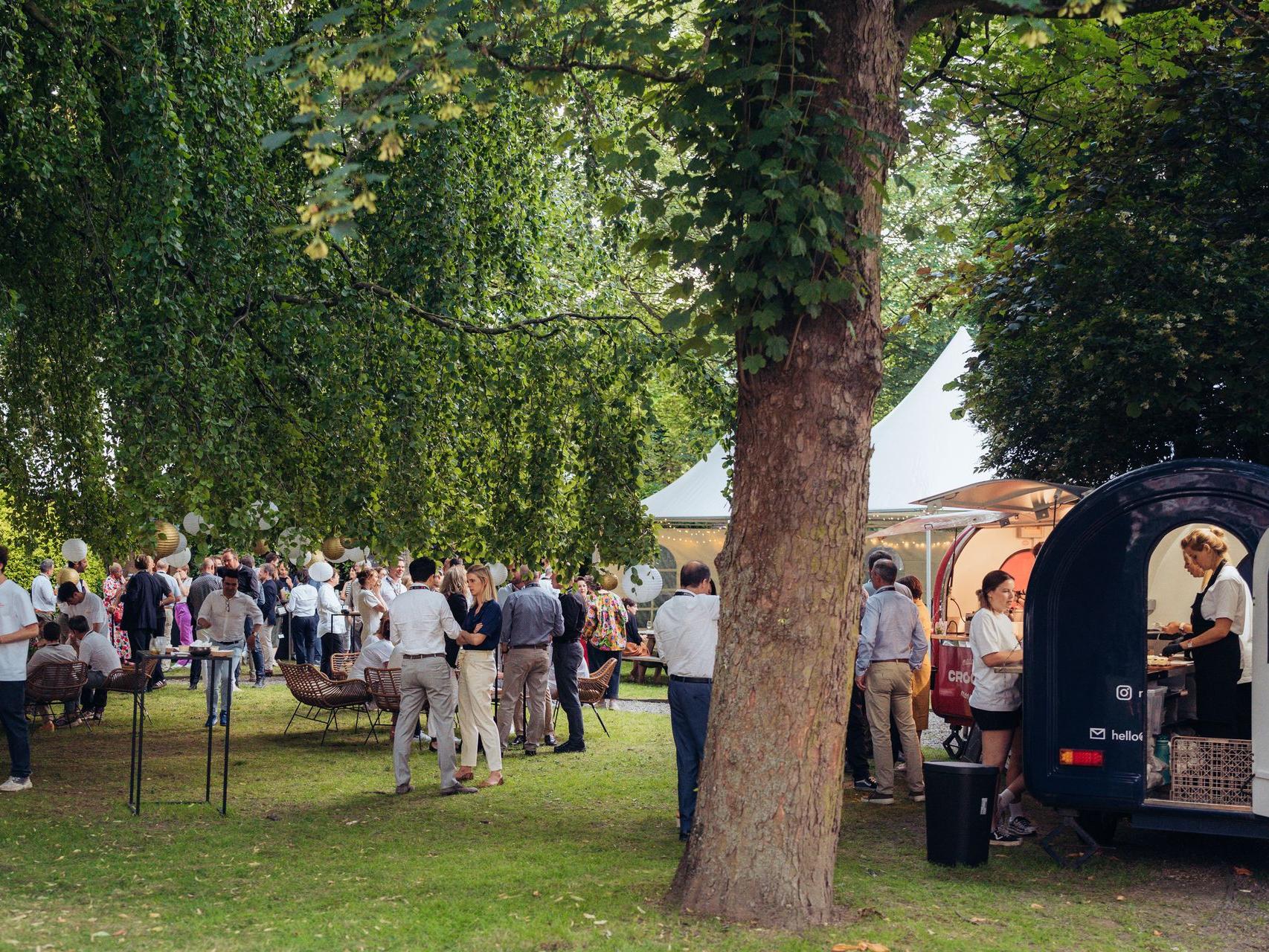 Garden party but no garden access? Indoor gathering? With our mobile setup, we just create our own space and offer the same quality service as with a foodtruck. (From 35pers)